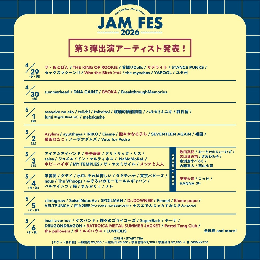 NISIEIFUKU JAM PRESENTS「JAM FES 2026」