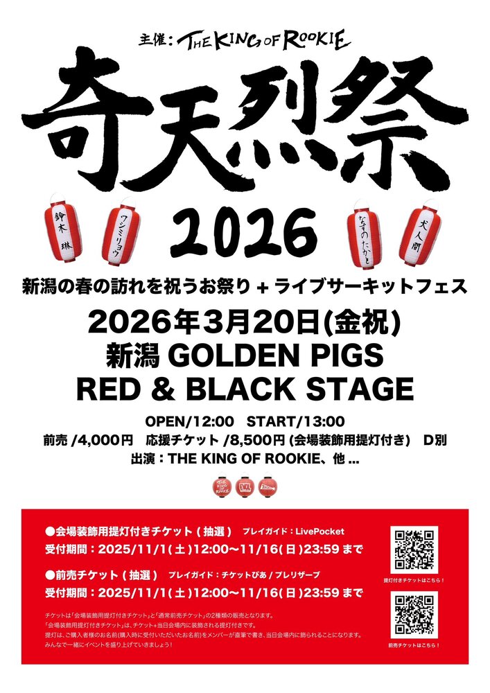 🎫前売¥4,000 / 応援チケット¥8,500(会場装飾用提灯付き)